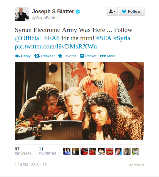 Les comptes officiels Twitter de la Coupe du Monde et de Joseph Blatter, président de la FIFA ont été piratés par des pirates syriens.