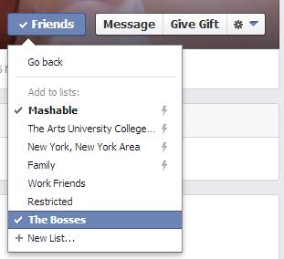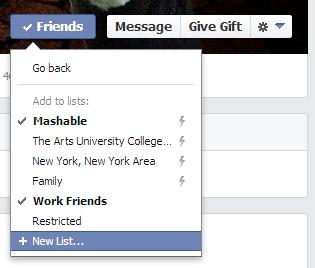 Pour configurer une liste, allez à la page du profil de la première personne et cliquez sur le menu « Amis » sur le coin inférieur droit de la photo de couverture.