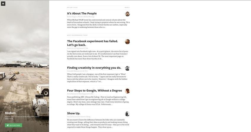 Medium, une nouvelle plate-forme de blogs créée par Evan Williams (co-fondateur de Blogger et Twitter), accueille des messages un peu plus long que 140 caractères. Le réseau, encore en version bêta après son lancement en Octobre dernier, vante un design simple, rigide et un mode d’édition conçu pour tout.