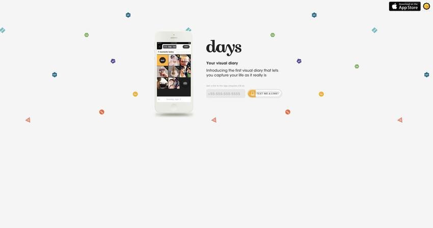 L’application mobile Days regroupe les photos que vous prenez avec elle dans un « journal visuel » segmenté en 24 heures. Il vous donne également la possibilité de partager un «jour» par message texte, courriel, ou par courrier à d’autres réseaux.