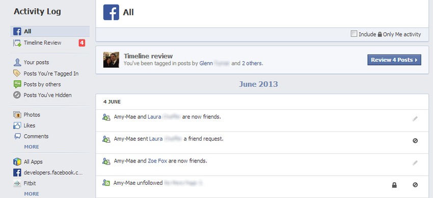 Votre historique personnel est une liste de vos messages ainsi que toutes vos activités Facebook, y compris votre historique de recherche.