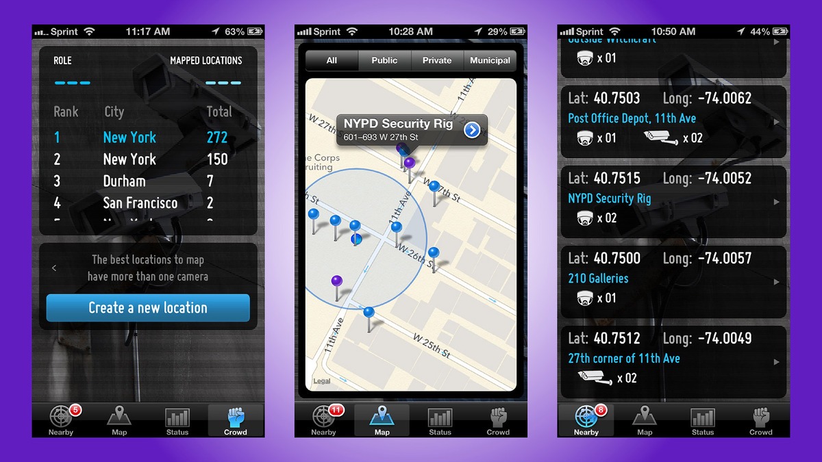 Surv combine les informations de l’utilisateur et la technologie pour créer des cartes avec des descriptions détaillées des emplacements ainsi que les types de caméras de surveillance. Kaza Razat et Khalid Mills ont développé l’application après s’être rendu compte à quel point les autorités ont accès à ces informations.