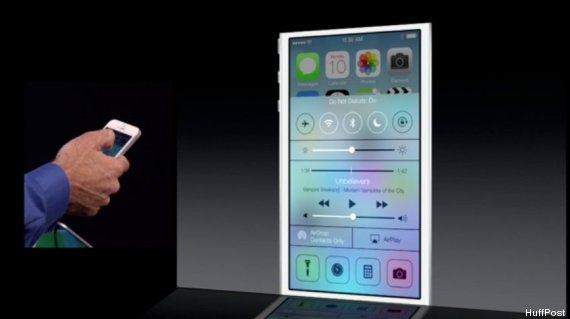Nouveauté dans dans l’iOS 7 : un Centre de Contrôle. Il peut être activé à partir de toute application qui apporte un contrôle sur le Wi-Fi, la luminosité et d’autres paramètres fréquemment utilisés.
