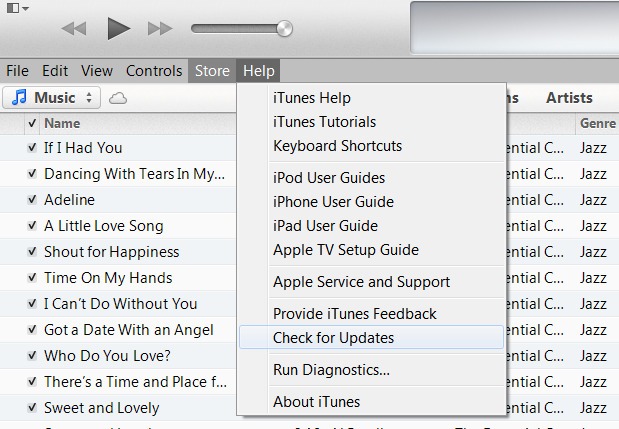 Avant de commencer, assurez-vous que votre version d’iTunes est mis à jour. Cliquez sur le menu «Aide», puis «Vérifier les mises à jour ».