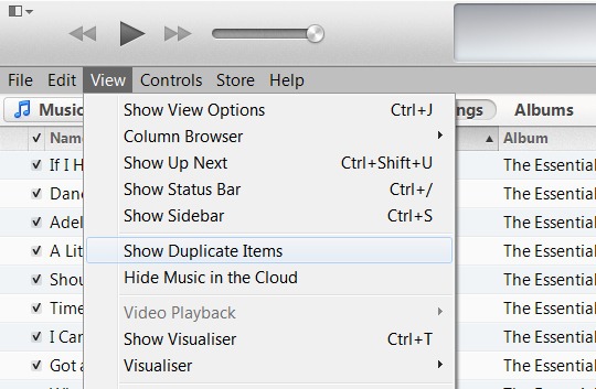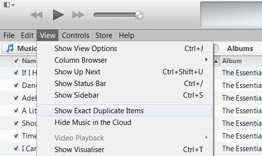 … Cependant, en maintenant enfoncé la touche Alt-Option (Mac) ou la touche Shift (PC) puis en cliquant sur le menu « Affichage », cela vous donnera l’option la plus utile «Afficher les doublons exacts. »