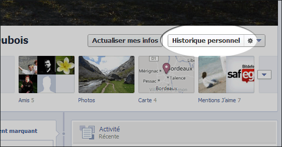 Cliquez sur le bouton historique personnel (sur votre profil):