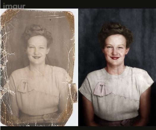 Regardez comme cette vieille photo d’une jeune femme est numériquement retouchée et recolorée en une image belle et nouvelle. Vous pouvez également voir l’avant et après sur le compte Imgour de TheHatersalad.