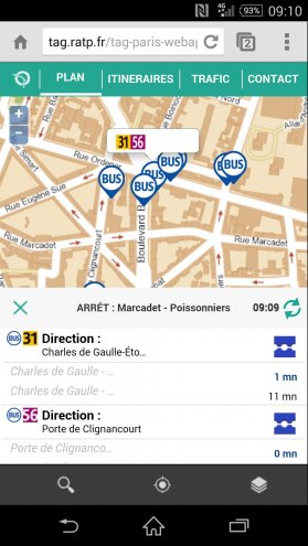 Depuis le mois d’octobre, la RATP teste le NFC sur la ligne de bus 24 et le tramway T2. En approchant son smartphone de l’affichette, l’utilisateur peut recevoir l’ensemble des informations sur le bus et le tramway : horaires en temps réel, itinéraire ou encore état du trafic. La page consultée peut aussi être sauvegardée pour une utilisation ultérieure. Pour ceux n’ayant pas un smartphone compatible, la RATP propose toujours les SMS et les QRcode.