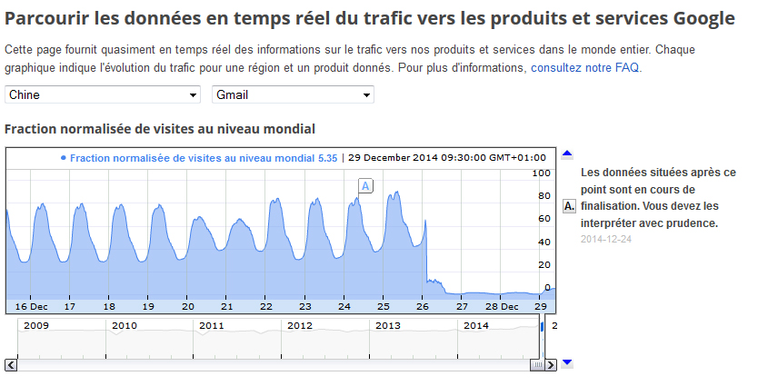 Selon Google et Dyn Research, le gouvernement chinois a bloqué l’accès au moteur de recherche et au service de messagerie Gmail.