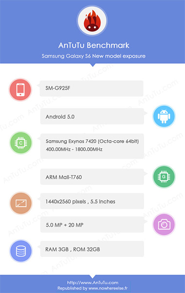 Sur la plate-forme Antutu, les caractéristiques techniques du Galaxy S6 de Samsung auraient déjà été révélées.