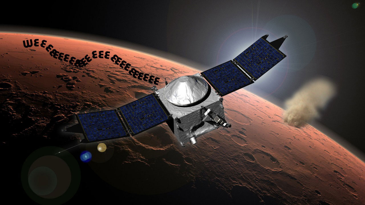 La sonde Maven a été lancée vers Mars en novembre 2013 pour tenter de percer le mystère de la disparition de son atmosphère et d’une grande partie de son eau. Maven s’est insérée en orbite de la planète rouge le 21 septembre 2014 et mène depuis quatre mois sa mission scientifique, qui doit durer au total un an.