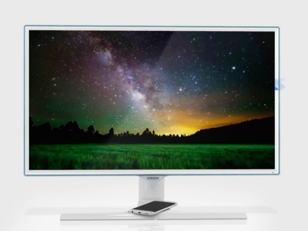 Si votre appareil mobile supporte la recharge sans fil Qi – comme le Galaxy S6, le Nexus 6 de Google ou encore le LG G3 – il vous suffit alors de placer votre mobile sur le pied de l’écran pour que celui-ci se recharge automatiquement.