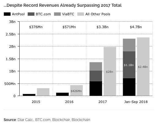 Un taux de hachage durablement élevé et une adoption croissante ont eu pour conséquence que les revenus du minage de Bitcoin ont dépassé de 1,7 milliard de dollars les chiffres de l’année dernière. Néanmoins, les plus importants pools du monde tirent à peine des bénéfices du minage de Bitcoin.