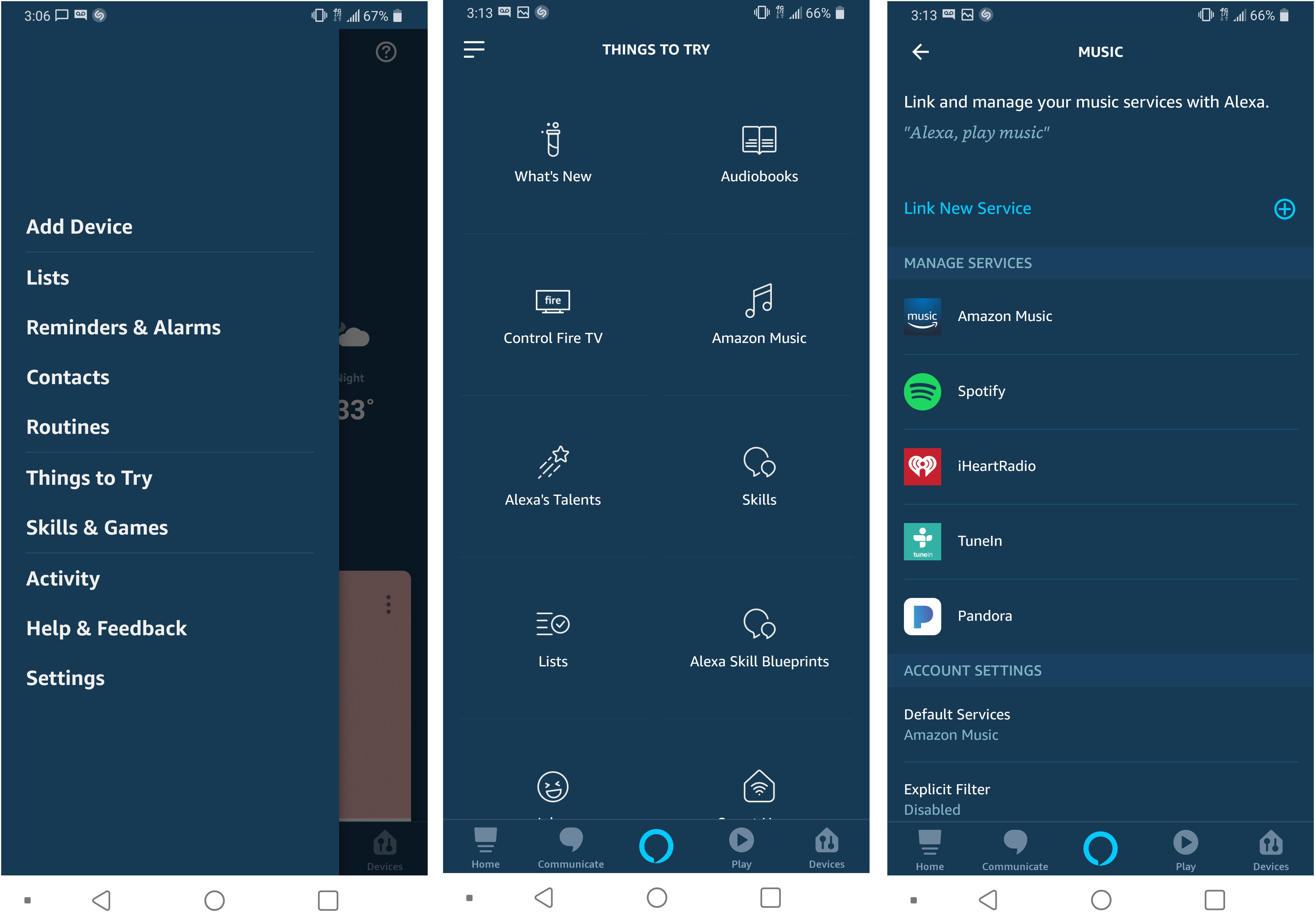 2/ Appuyez sur Choses à essayer> Amazon Music, puis choisissez les services de musique que vous préférez.