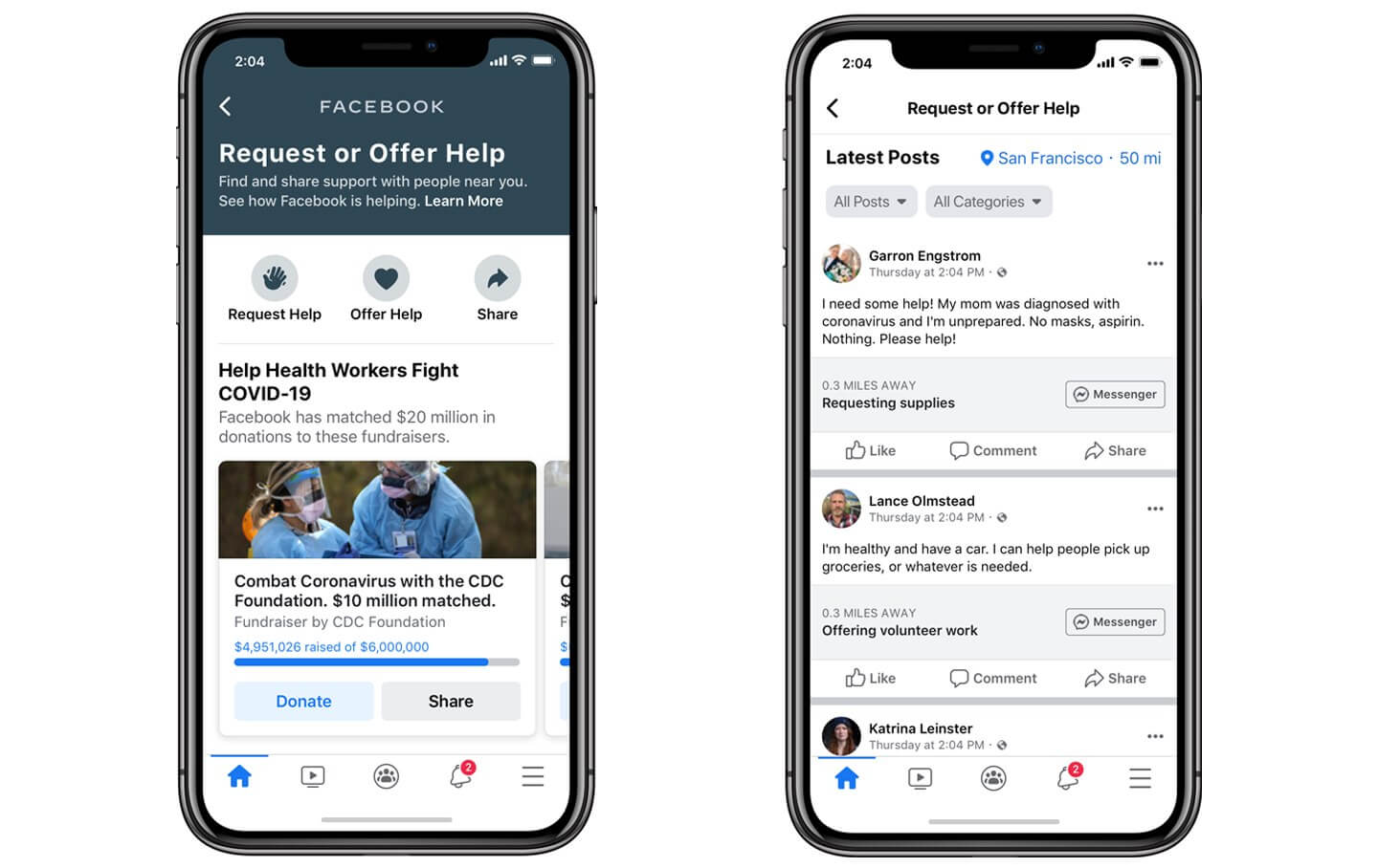 Une nouvelle fonctionnalité sur Facebook permet aux gens d’offrir et de demander de l’aide pendant la crise du Covid-19.