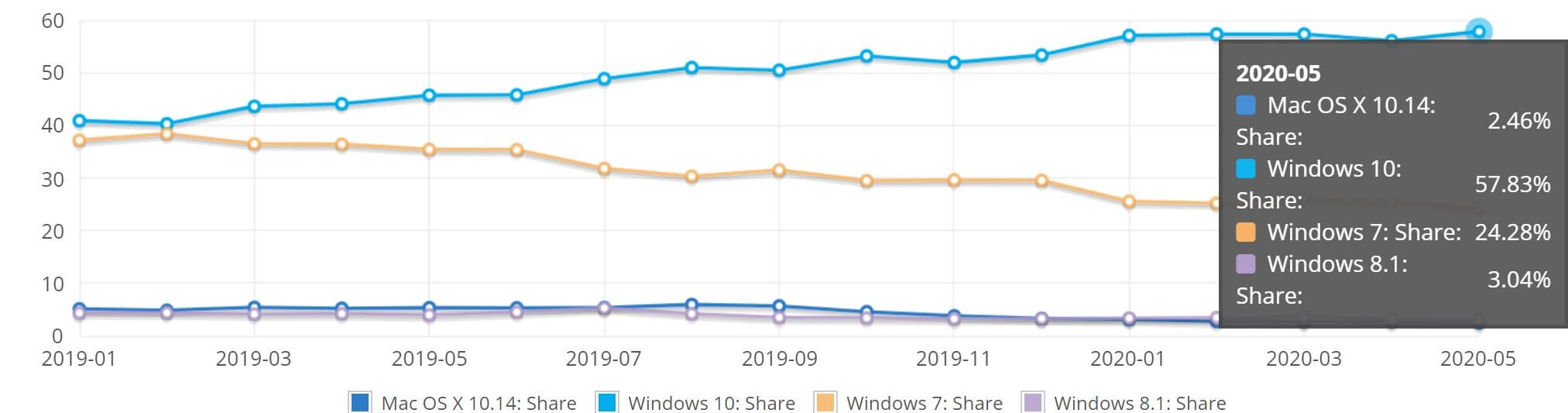 Il y a douze mois, Windows 7 détenait 35% du marché, donc une baisse de 10% pour un système d’exploitation vieux de 10 ans qui n’est plus pris en charge n’est pas mauvais du tout. Mais pourquoi tant de gens veulent éviter la mise à niveau vers Windows 10? Cela est dû en grande partie aux problèmes de confidentialité entourant le système moderne, bien que Microsoft ait fait beaucoup pour y remédier ces derniers temps. Il y a aussi les nombreux problèmes causés par les mises à jour de Windows 10, le fait que certaines entreprises n’ont tout simplement pas réussi à mettre à jour, et beaucoup de gens préfèrent simplement Windows 7.