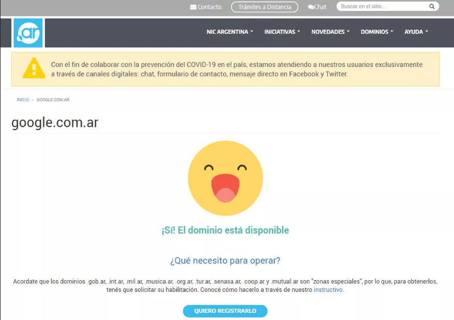 Kurona a accédé au Network Information Center Argentina (NIC), qui gère les domaines de code de pays .ar. Il a cherché Google et a été surpris d’y trouver le domaine Google en vente.