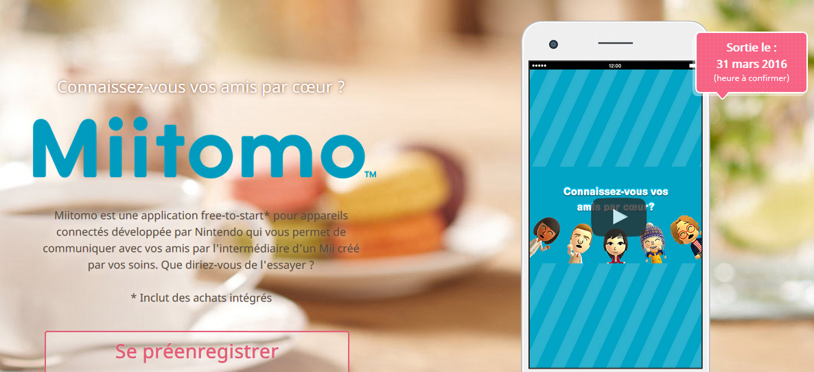 Miitomo arrive en France dès le 31 mars sur Android et iOS Jeux vidéo Miitomo arrive en France dès le 31 mars sur Android et iOS La première application mobile de Nintendo, MiiTOMO, sortira sur App Store et Google Play dès…Emeric30 mars 2016